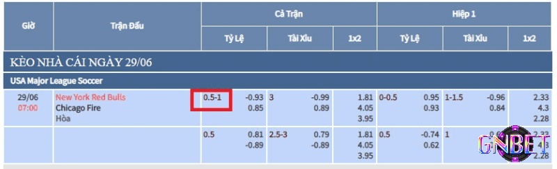 - Nếu đội New York Red Bulls thắng với tỷ số 1-0, 2-1, 3-2,… thắng 1 bàn, người đặt cược cho New York Red Bulls sẽ thắng 1/2 số tiền cược. Người đặt cược cho Chicago Fire sẽ thua 1/2 số tiền cược. Ví dụ, nếu bạn đặt cược 1.000.000 đồng cho New York Red Bulls, bạn sẽ thắng 500.000 đồng. Còn người đặt cược cho Chicago Fire sẽ thua 500.000 đồng.